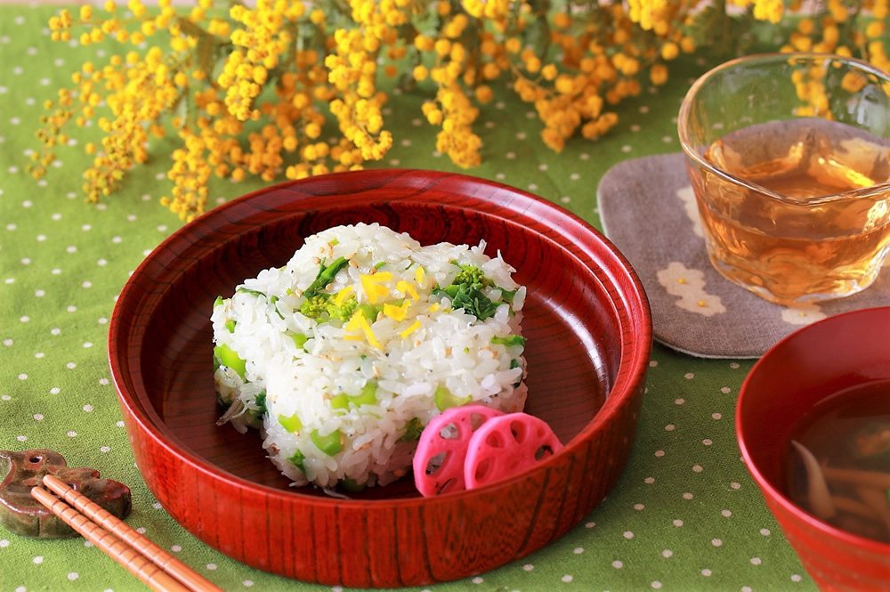 春らしい菜の花を使ったランチメニュー。 おにぎりにすれば行楽のお供にもピッタリです! |
